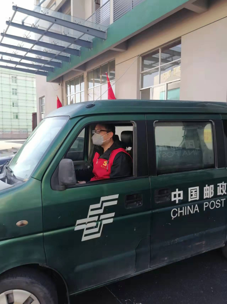 賀進(jìn)在鉛山葛仙山第一例陽(yáng)性消息出來(lái)后,就馬上聯(lián)系各個(gè)網(wǎng)點(diǎn)部站,詢(xún)問(wèn)防疫物資儲(chǔ)備情況,并且?guī)椭鷮⒎酪呶镔Y送到各個(gè)網(wǎng)點(diǎn)和部站。正值“雙十一”以及金融旺季生產(chǎn),賀進(jìn)上午就去金融網(wǎng)點(diǎn)幫助做好疫情防控工作,走訪客戶(hù)贈(zèng)送防疫應(yīng)急包,維護(hù)廳堂,下午就去部站幫忙,因?yàn)槭艿揭咔榈挠绊?,小區(qū)被封,許多代投點(diǎn)都被關(guān)閉,為了確保廣大群眾的郵件能夠按時(shí)投送完成,他主動(dòng)幫助卸貨、分貨,幫助快遞員們分擔(dān)投遞壓力,一起去將郵件投遞出去。