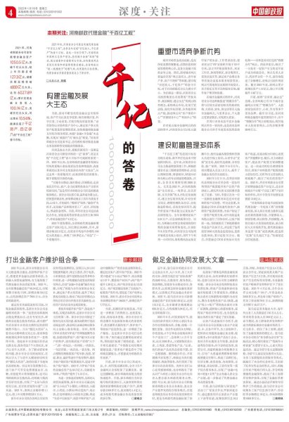 1月19日,《中國郵政報(bào)》以《千億的答卷》為題,對河南省分公司金融業(yè)務(wù)勞動競賽發(fā)展取得的優(yōu)異成績進(jìn)行了整版報(bào)道。