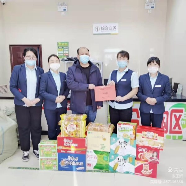 拜泉縣三道鎮(zhèn)營業(yè)所在2021-2022年度全省郵政代理金融跨年度營銷活動(dòng)第三輪分組PK賽中累積增額5173.69萬元,獲得縣分公司組第五組第三名的成績,為鼓勵(lì)先進(jìn),省郵政工會(huì)和市郵政工會(huì)委托縣分公司工會(huì)對(duì)拜泉縣三道鎮(zhèn)營業(yè)所全體人員進(jìn)行慰問。