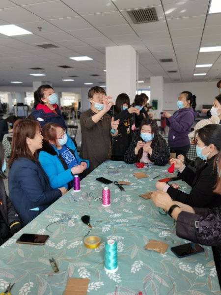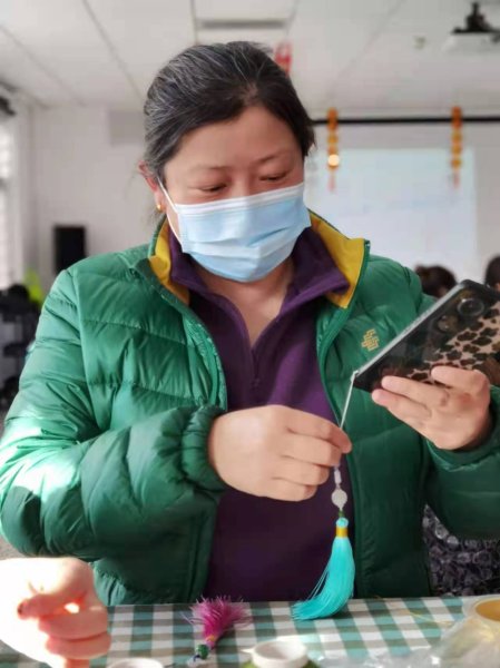 在近兩個小時的時間里,女同胞們認真向老師學(xué)習(xí)著手工繩藝編織技藝,她們一個個細心制作,老師示范一步,大家跟著做一步。結(jié)繩看似簡單,其實每一個步驟都很關(guān)鍵,錯了一步就會失敗,幾個看似簡單的動作卻能編織出不同的繩結(jié),在老師不厭其煩的指導(dǎo)下,大家一步一步的反復(fù)摸索,現(xiàn)場氛圍很是熱鬧,來自各個支局互不相識的員工,從陌生到熟悉,從冷漠到搭把手,彼此之間相互交流,互相學(xué)習(xí),手法逐漸嫻熟起來!一個小時左右,一個個編織緊密的流蘇制作完成,神奇的繩藝加上裝飾品的搭配,顯示出濃濃的中國風以它獨特的魅力征服了大家!難得的手工DIY機會讓大家樂在其中?!翱次业牧魈K完工啦”“我的也好了”聲音此起彼伏,女神們迫不及待迫不及待向在場的人展示自己的手工作品。