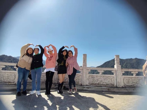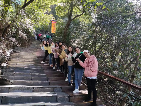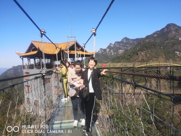上午,女同胞們一行步入了大覺山古鎮(zhèn),古鎮(zhèn)依山傍水、建筑錯落有致,結(jié)合地形地貌融入一河三街六巷九府,再現(xiàn)大宋風(fēng)骨,讓大家仿佛回到了千年前的大宋繁華商都;踏上了中國首條長100米,垂直高度達到100多米的高空玻璃橋(也稱“太空步廊”),縱目武夷山脈逶迤山色,俯視腳下萬丈深淵,感受大自然的神奇魅力;進入了座落在蓮花峰海拔1000米的一個天然巖洞內(nèi)集“儒、釋、道”三教合一的大覺巖寺,凝聽美妙神奇的民間傳說;最后,大家拾級而上,經(jīng)過1365個石階到達南天門。站在南天門上,極目遠眺,所有的大山此時都變得渺小,置身其中,人會有很多的感觸,所有困難都變得不是困難,所有的人生坎坷此時也都變得微不足道了!