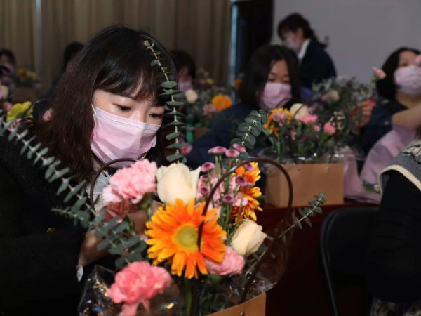 在三八節(jié)前一天,郵區(qū)中心還精心組織了“一次插花課程、一場健康講座、一份溫馨禮物”系列慶祝活動。3月7日上午,50位來自各處理中心和機(jī)關(guān)的女同胞們,在專業(yè)插花機(jī)構(gòu)講師的帶領(lǐng)下進(jìn)行了藝術(shù)插花活動,大家利用活動現(xiàn)場提供的鮮花材料和插花工具,在插花培訓(xùn)師的專業(yè)指導(dǎo)下按照喜好制作藝術(shù)插花作品,為自己量身定制了一份美麗的節(jié)日禮品,裝點(diǎn)美好生活。3月7日下午,邀請愛康國賓體檢中心健康專家,針對兩年來郵區(qū)中心女職工體檢結(jié)果,為女同胞們舉辦了一場“婦女節(jié)前話姐妹健康”知識的講座,大家在聆聽專家講解婦科和甲狀腺健康知識的同時,還就平時遇到的健康困擾與專家進(jìn)行了現(xiàn)場互動,氣氛熱烈。