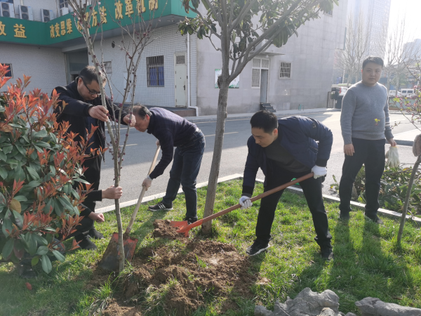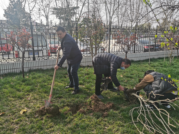 植樹現(xiàn)場(chǎng),大家熱情高漲,按照預(yù)先分組,把采購(gòu)的迎春、海棠、月季、紫荊、紫藤、碧桃、丁香等60余株樹苗運(yùn)到目的地,全體員工立即投入到植樹勞動(dòng)中。員工們兩兩一組,分工協(xié)作,挖土填坑。大家埋頭苦干,揮灑汗水,植樹現(xiàn)場(chǎng)一片熱火朝天的勞動(dòng)景象。經(jīng)過一上午的努力,所購(gòu)樹苗全部栽種成功,每顆樹苗都凝聚了大家的汗水與寄托,整個(gè)活動(dòng)取得了圓滿成功。