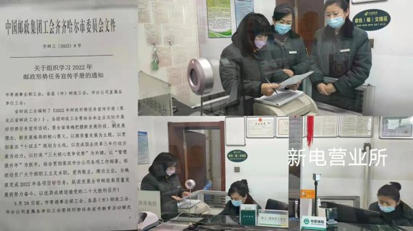 2022年是向第二個百年奮斗目標邁進的重要一年,是黨的二十大召開之年。省郵政工會編制并下發(fā)了《2022年郵政形勢任務(wù)宣傳手冊(黑龍江省郵政工會)》,齊齊哈爾郵政工會迅速行動,要求各基層工會要結(jié)合自身實際開展好形勢任務(wù)宣傳活動,要全面準確把握新發(fā)展階段、新發(fā)展理念、新發(fā)展格局的核心要義。