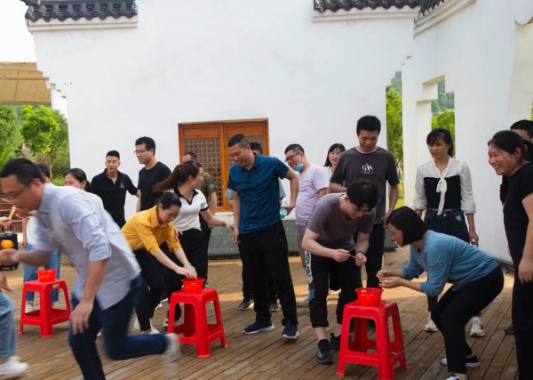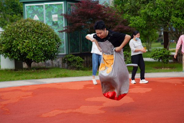 此次拓展活動分投擲手榴彈(道具)、袋鼠跳、夾乒乓球、面粉傳遞4個項目。在活動教官的帶領下,全體人員先進行了熱身運動,然后分若干個小隊進行比賽。