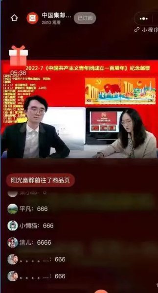 與以往不同,本次直播在首尾兩次植入了1分鐘的百萬(wàn)莊共青團(tuán)郵局簡(jiǎn)介《前進(jìn)中的共青團(tuán)郵局》,以及2分鐘的《中國(guó)共產(chǎn)主義青年團(tuán)成立100周年紀(jì)念宣傳視頻》,助力“中國(guó)集郵”品牌和“共青團(tuán)郵局”子品牌在新郵發(fā)行熱度期的正向傳播。