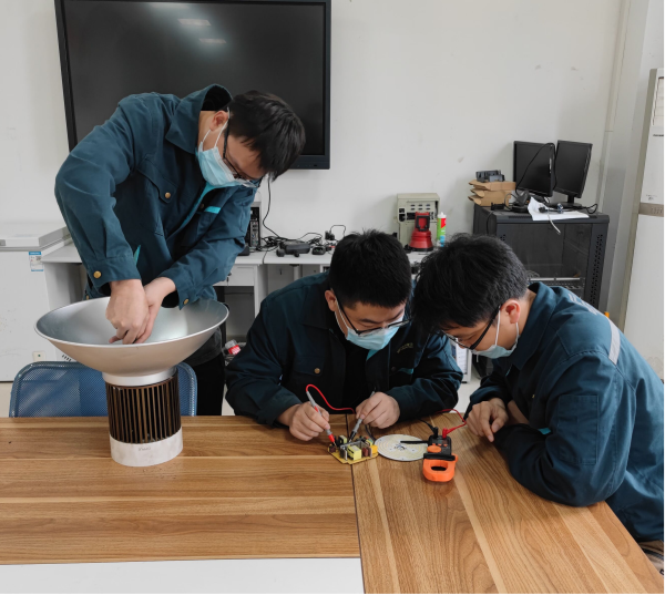 幾位年輕成員在郭正谷和李春陽的指導下,將工礦燈逐一拆開,零件逐個測試,最后發(fā)現(xiàn)大部分燈都只是光源板損壞,只需采購光源板進行更換就可以修復。工作室成員一起動手很快就將三十多個工礦燈修復好,測試正常后還細心地貼上標簽以備后查。工作室修復好這些工礦燈比原本計劃重新采購新燈大約節(jié)省費用19000元左右。這些修復好的工礦燈陸續(xù)將安裝回原位,恢復場內(nèi)缺失的照明,保證生產(chǎn)現(xiàn)場亮度能夠維持生產(chǎn)有序安全地進行。通過這一次修復活動,工作室成員既鍛煉的動手能力,也學習到了很多電路方面的知識,還為進口車間節(jié)省了不少維修成本,可謂是“一舉三得”。