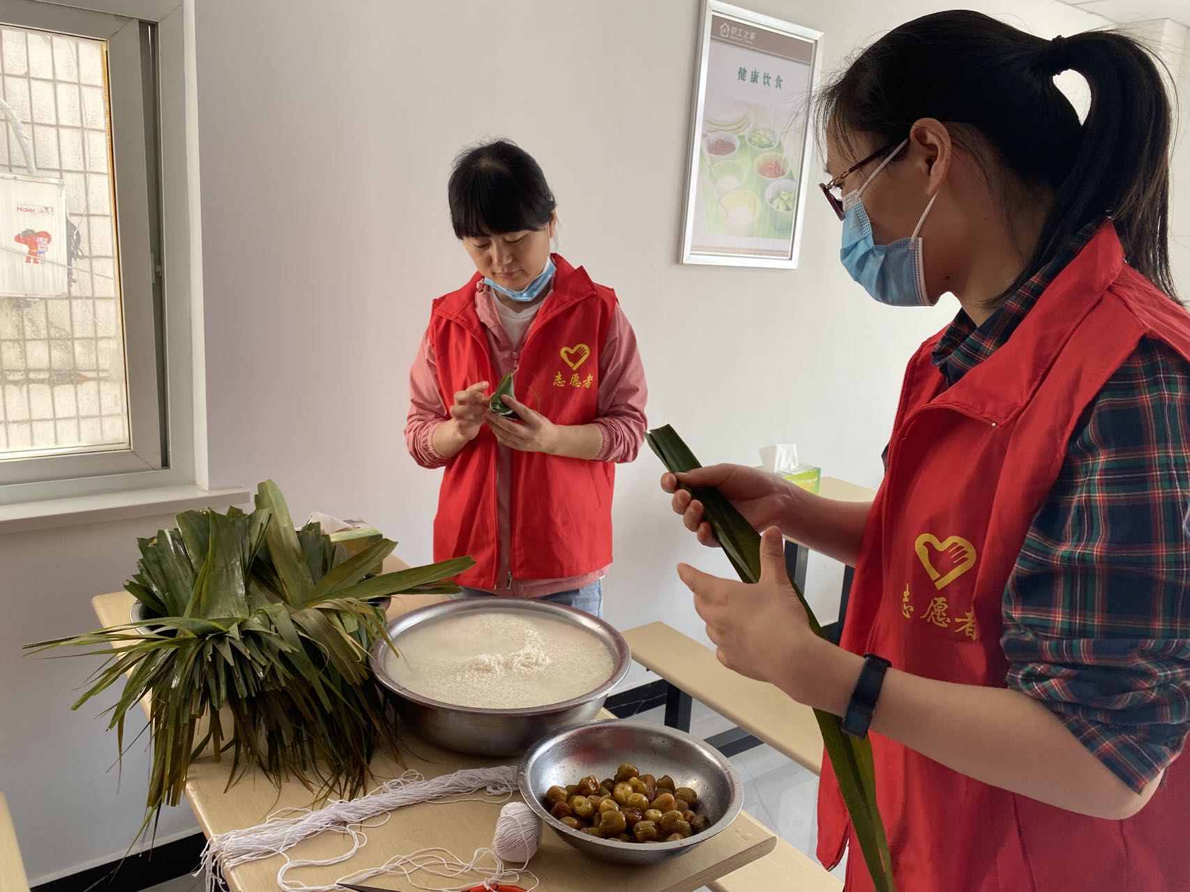 活動(dòng)開始,大家交流了端午節(jié)的相關(guān)來歷、傳說故事和習(xí)俗活動(dòng),感受傳統(tǒng)節(jié)日折射出的濃郁文化氣息。隨后,工作人員把提前泡好的糯米、紅棗、粽葉等食材準(zhǔn)備好之后,包粽子活動(dòng)開始了,食堂工作人員現(xiàn)場(chǎng)教學(xué)“先拿一片粽葉把它卷起來,折一個(gè)角,這樣米就不會(huì)漏出來”?!靶『伟聂兆永饨欠置?,好看”、“甘老師包的真滿,這粽子實(shí)誠”……整個(gè)活動(dòng)現(xiàn)場(chǎng)一片歡聲笑語,氣氛和諧,粽香飄香,一片片粽葉、一粒粒糯米,在大家一雙雙靈巧的手中變成了香甜可口的粽子。 一個(gè)小小的粽子,經(jīng)過大家的手,有了情感的溫度;一次主題活動(dòng),因?yàn)閱T工的詮釋,有了團(tuán)結(jié)的力量。