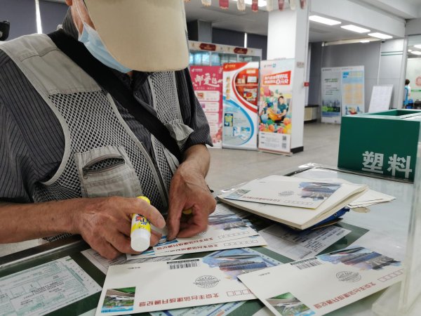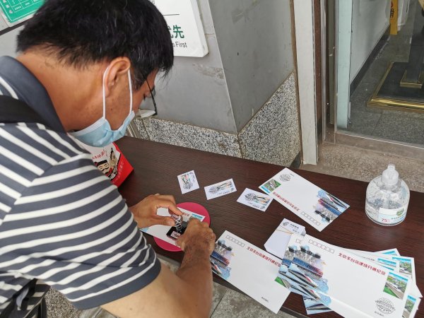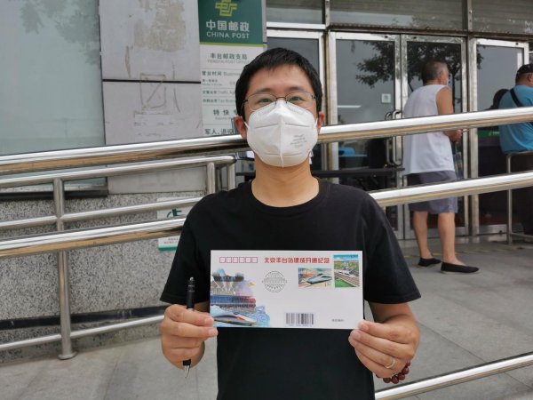 6月20日,北京豐臺站開通運營,首發(fā)高鐵G601徐徐駛出站臺。 早上6點半,家住豐臺區(qū)的宋勇先生是第一位來到豐臺郵政支局門口排隊,等待購買今天發(fā)行的紀念封。宋勇說:“我自己收集郵品20多年了,高鐵系列的集郵產(chǎn)品我都有收藏,每次都到現(xiàn)場購買,自己蓋戳,特別有儀式感。這次因為疫情,咱們郵局采取線上接龍的方式預(yù)約購買,我也是看到群里的信息馬上就接龍了。”