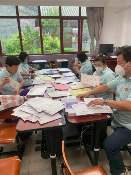 接到任務(wù)后,支局立即組建工作小組,成立了由支局長帶頭,包括營業(yè)、營銷、寄遞等骨干人員組成的北京三十五中中招錄取通知書收寄服務(wù)團(tuán)隊(duì),同時準(zhǔn)備好了各種收寄物品,包括特快專遞封套、EMS詳情單等,按照之前規(guī)定的流水作業(yè)模式投入到緊張的工作中。在收到錄取通知書郵寄名址后,營銷主管馬上打印收寄單對名址信息進(jìn)行核對,提前做好數(shù)據(jù)準(zhǔn)備。之后,又分成兩人小組分別對帶有學(xué)生姓名的北京市高級中學(xué)學(xué)校招生錄取通知書和帶有學(xué)生序號的致2022級高一新生家長的一封信、致學(xué)生的一封信三份材料進(jìn)行精準(zhǔn)核對、封裝、貼簽……