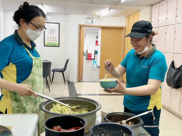 “今天天氣預報高溫紅色預警,同志們出班要注意防范,確保郵件和自身安全!”,武漢硚口區(qū)辛家地攬投站投遞員龔磊穿梭在大街小巷投遞郵件,皮膚曬得通紅,汗水滲透衣衫,一個班次回來,衣服都能擰出水來。像這樣頂著高溫一天三班出班的投遞員站里一共21人,堅守工作崗位是郵政人的初心使命,作為補給后方的攬投站點,工會組織則將她建成“清涼港灣”,熱騰綠豆湯、泉水冰西瓜、治冰飲料機、防暑藥品箱、整潔空調(diào)房,工會花式解暑層出不窮,關心員工在做好工作的同時,還要保重身體健康,件件關懷實事都想在職工前頭。