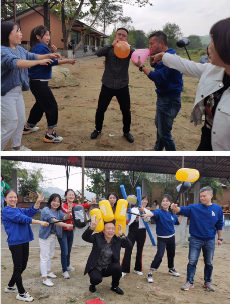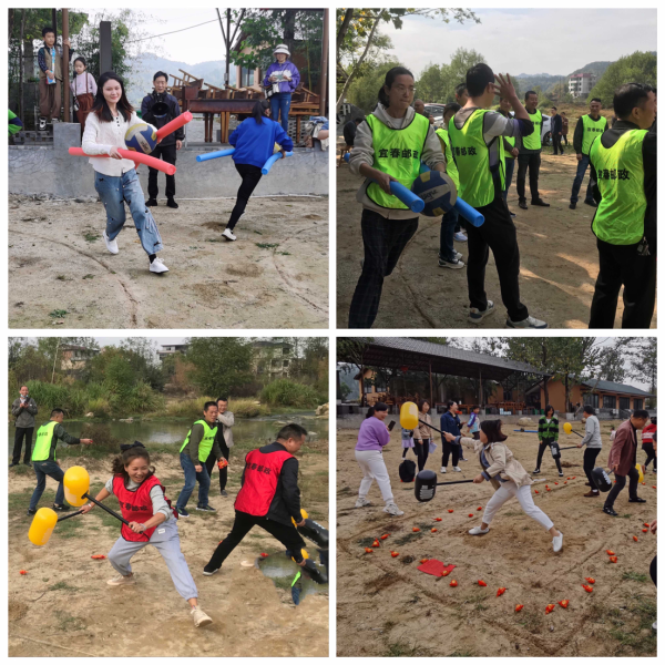 活動在一場場妙趣橫生的趣味小游戲中拉開帷幕。秋高氣爽時節(jié),置身于河流旁的戶外沙灘上,員工們個個興致盎然、躍躍欲試。歡樂的熱身運動之后,各部門工會小組之間的PK正式開啟?!半p龍戲珠”游戲最是考驗團隊合作能力。游戲開始,隊長到圈內用長棒夾起圓球,圍著外圈跑一圈后,交給下一位隊員繼續(xù)夾球接力跑。接力賽緊張激烈,有的隊員屢夾屢掉干著急,有的隊員一次成功羨煞旁人,緊張有趣的互動不知不覺加深了隊友們的默契,圍觀的拉拉隊為參賽的隊友吶喊助威,競賽氣氛被不斷推高。