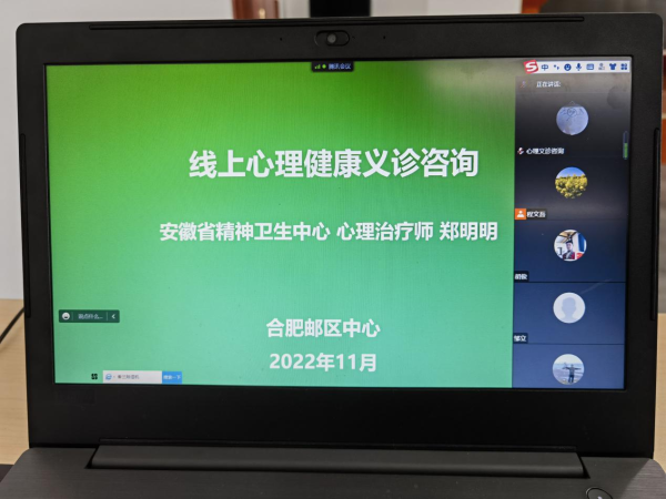 為持續(xù)關愛職工心理健康,緩解疫情等特殊時期的心理壓力,11月25日下午,合肥郵區(qū)中心局工會舉辦線上心理健康義診咨詢活動,邀請安徽省精神衛(wèi)生中心心理治療師圍繞疫情時期心理健康呵護、工作壓力緩解和睡眠障礙克服等進行了義診及互動交流。合肥郵區(qū)中心有60余位職工參與了義診咨詢活動。
