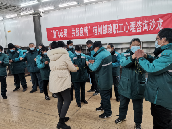 12月30日,宿州郵政工會(huì)組織開展“放飛心靈 共戰(zhàn)疫情”職工心理咨詢沙龍活動(dòng),30名一線攬投人員代表參加了本次活動(dòng)。活動(dòng)誠(chéng)邀國(guó)家心理學(xué)碩士、二級(jí)心理咨詢師張老師走進(jìn)郵政基層,與職工開展面對(duì)面心理健康沙龍活動(dòng)。