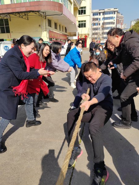 比賽采取兩兩對(duì)抗,勝出兩隊(duì)最后爭(zhēng)奪冠亞軍。第一輪是寄遞對(duì)渝水,隨著裁判“嘟”的一聲哨響,雙方都卯足了勁往后拉,因?yàn)殡p方實(shí)力懸殊,最終寄遞隊(duì)輕松獲勝了。第二輪是機(jī)關(guān)對(duì)分宜,雙方都提前做好了準(zhǔn)備工作,身體全部往后仰,緊緊的拉著繩子,只聽(tīng)哨聲一響,中心的紅絲帶朝著機(jī)關(guān)隊(duì)移動(dòng),站在兩側(cè)的啦啦隊(duì)員們高聲吶喊“加油”助威,聽(tīng)到吶喊聲,機(jī)關(guān)隊(duì)的隊(duì)員們備受鼓舞,一鼓作氣贏了對(duì)方。休息片刻后,最激烈的第三輪開(kāi)始了,機(jī)關(guān)隊(duì)和寄遞隊(duì)比賽開(kāi)始后,紅絲帶一會(huì)兒朝著寄遞隊(duì)移動(dòng),一會(huì)兒又朝著機(jī)關(guān)隊(duì)移動(dòng),兩邊的啦啦隊(duì)都在相繼喊著“加油!加油!”吶喊聲此起彼伏,震耳欲聾。前兩局雙方各勝一局,最終還是寄遞隊(duì)獲得了冠軍。