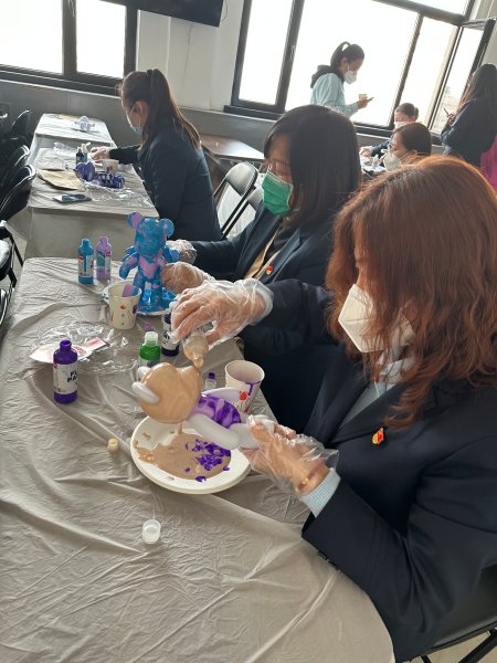 在指導(dǎo)老師的帶領(lǐng)下,參與的女職工們先挑選出自己喜歡的顏色后積極動(dòng)手操作,利用自己靈巧的雙手、豐富的創(chuàng)意親自設(shè)計(jì)、擺放并染色制作出一只只屬于自己可愛小熊?;顒?dòng)完畢后,大家紛紛舉著自己的作品進(jìn)行拍照留念,共同分享DIY小熊的體會(huì)和收獲的喜悅,在一只只色彩斑斕小熊的襯托下更凸顯女性同胞柔美、可愛的獨(dú)特氣質(zhì)。