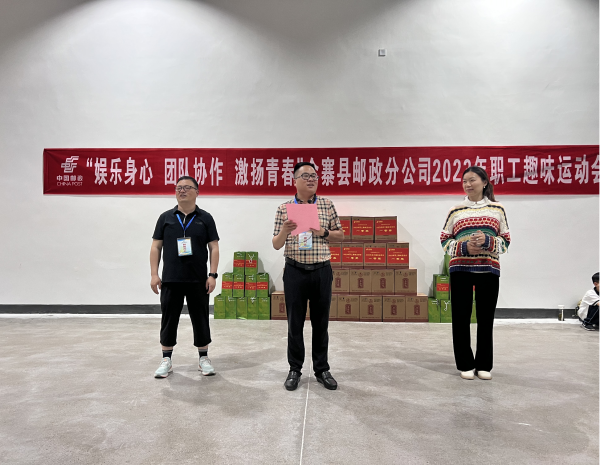 此次運動會的比賽項目集趣味性、娛樂性、協(xié)作性和競爭性于一體,旨在活躍身心健康、培育團隊精神,共安排了拔河、送球入筐、盲人敲鑼、穿的快和二人三足5個項目。來自各網(wǎng)點、各部門,共5支代表隊,100多名運動員參賽。比賽中,運動員們熱情高漲、活力四射、配合默契、彼此加油。整個過程,既緊張激烈又妙趣橫生,充分展現(xiàn)了郵政職工的青春活力和亮麗風采。