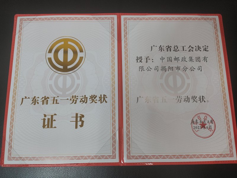 4月27日,廣東省慶?!拔逡弧眹?guó)際勞動(dòng)節(jié)暨五一勞動(dòng)獎(jiǎng)表彰大會(huì)傳來(lái)喜訊,中國(guó)郵政集團(tuán)有限公司揭陽(yáng)市分公司榮獲“廣東省五一勞動(dòng)獎(jiǎng)狀”稱號(hào)。