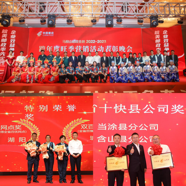 最后表彰晚會在全場齊唱《相親相愛一家人》中結(jié)束,馬鞍山市分公司將以“五馬”精神為指引,發(fā)揚能打勝仗的優(yōu)良作風,真抓實干、踔厲奮發(fā),奮力開創(chuàng)馬鞍山代理金融工作新局面,為“優(yōu)新強足”皖美郵政的建設(shè)而貢獻力量。