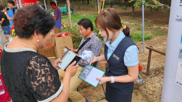 龐各莊郵政支局作為屬地郵局,積極開展郵政品牌宣傳和特色業(yè)務(wù)推廣工作,并與金融網(wǎng)點工作人員合作提供金融業(yè)務(wù)服務(wù)?;顒蝇F(xiàn)場人頭攢動、熱鬧異常,往來旅客紛紛在郵政展臺駐足參觀和選購。