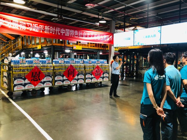 在新順生產(chǎn)現(xiàn)場,劉俊峰副總對航郵中心在當(dāng)前高考錄取通知書、學(xué)生檔案等寄遞服務(wù)保障中做出的積極貢獻(xiàn)給予充分肯定,稱贊航郵中心是一支英勇頑強(qiáng)、敢于擔(dān)當(dāng)、能打勝仗的隊伍。希望航郵中心繼續(xù)發(fā)揚斗爭精神,積極落實服務(wù)質(zhì)量提升專項整治工作,為持續(xù)提升北京郵政整體服務(wù)質(zhì)量貢獻(xiàn)力量。與此同時,對航郵中心職工吃苦耐勞、堅守崗位的勞動精神表示贊揚和衷心感謝,叮囑他們在堅守崗位的同時也要增強(qiáng)自我保護(hù)意識,做好防暑降溫,合理安排作息時間,以更安全、更健康的狀態(tài)投入到工作中。并為堅守一線職工送上礦泉水、冰紅茶等清涼飲品,切實把市分公司的關(guān)懷送到職工身邊,把絲絲涼意送進(jìn)職工心坎里。