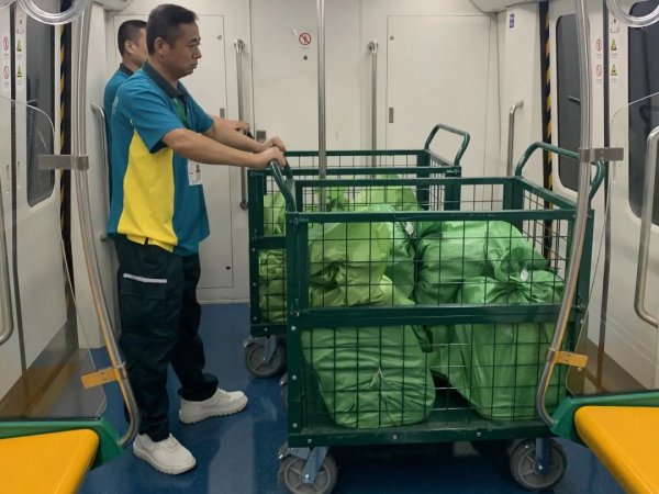 為確保此次試點(diǎn)運(yùn)行工作順利啟動(dòng),北京郵政在前期協(xié)同地鐵運(yùn)營方進(jìn)行了三輪全流程實(shí)地測試。北京郵政將通過地鐵代運(yùn)的報(bào)刊雜志承裝在定制容器中,通過9號(hào)線與燕房線進(jìn)行運(yùn)輸。報(bào)刊雜志由9號(hào)線六里橋站上車,運(yùn)輸至燕房線燕山站下車。9號(hào)-房山-燕房線運(yùn)送的報(bào)刊品類固定且符合要求,由郵政人員對(duì)報(bào)紙報(bào)刊進(jìn)行檢查并進(jìn)行封裝、加貼封條,到達(dá)車站后經(jīng)地鐵安檢人員現(xiàn)場檢查封條完好后直接進(jìn)站。貨物在運(yùn)輸過程中,整齊放置在車廂內(nèi)的固定區(qū)域,不影響車廂乘客乘車,滿足地鐵相關(guān)安全要求。北京郵政安排專人進(jìn)行跟車押運(yùn),確保貨物在地鐵車廂內(nèi)運(yùn)輸時(shí),有專人看管,確保貨物在運(yùn)輸過程中不影響乘客出行。