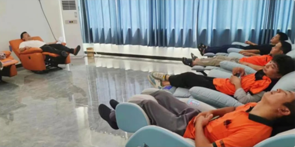 二是“休息好”。該公司購置了1臺空調(diào)、2臺按摩椅、6臺休閑躺椅,打造了一個舒適的休息場地,讓投遞員、營業(yè)員、機關(guān)員工在中午高溫期間能得到充分休息、及時補充體力。