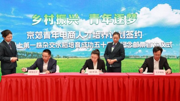 在簽約儀式現(xiàn)場,密云區(qū)副區(qū)長馬超與中國郵政集團有限公司北京市分公司副總經理范小榮共同為世界上第一株雜交水稻培育成功五十周年紀念郵票和首日封揭幕,與會嘉賓也通過郵票這枚小小的“國家名片”,一起感受我國農業(yè)現(xiàn)代化建設的歷史進程和在鄉(xiāng)村振興領域所取得的偉大成就。(北京郵政工會)