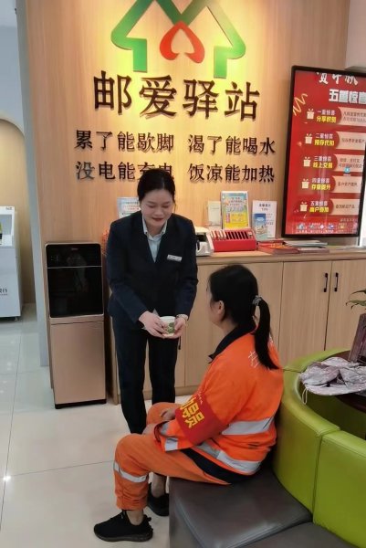 戶外勞動(dòng)者服務(wù)站幫助了廣大戶外勞動(dòng)者解決長期面臨的“吃飯難、喝水難、休息難”等各種現(xiàn)實(shí)問題,充分調(diào)動(dòng)他們的工作積極性,提升了他們的歸屬感、幸福感,“郵愛驛站”,用行動(dòng)傳遞溫暖。