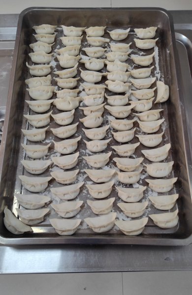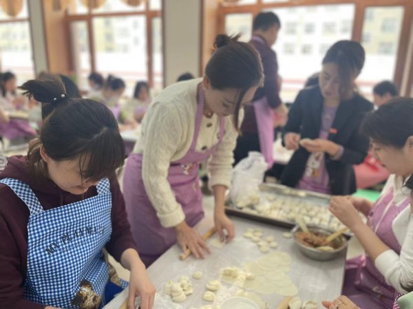 8日上午8點(diǎn)50分,活動(dòng)正式開始。食堂工作人員早早為大家準(zhǔn)備了新鮮的餃子餡和餃子皮?;顒?dòng)現(xiàn)場(chǎng),大家按照分組進(jìn)行“包餃子"比賽,有的分發(fā)餃子皮、有的取餡、有的包餃子,大家分工有序,忙而不亂;尤其是包餃子的,面皮經(jīng)過他們魔術(shù)般一捏,各式各樣各種餃子瞬問呈現(xiàn)在眼前,不一會(huì)兒,蓋簾上擺滿了包好的餃子?;顒?dòng)期間,大家談笑風(fēng)生,沉浸在歡樂的節(jié)日氣氛中。