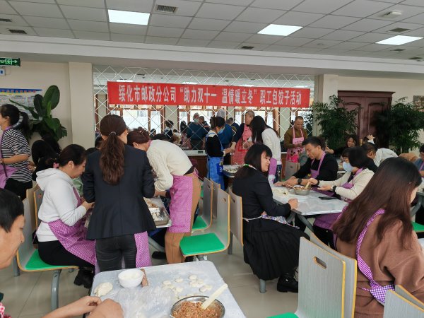 11月8日為冬季的第一個(gè)節(jié)氣“立冬“,為迎接冬天的正式開始,又恰逢”雙十一“旺季生產(chǎn)的來臨,綏化市郵政工會(huì)組織干部職工齊聚食堂,開展了“助力雙十一 溫情暖立冬”職工包餃子活動(dòng)。