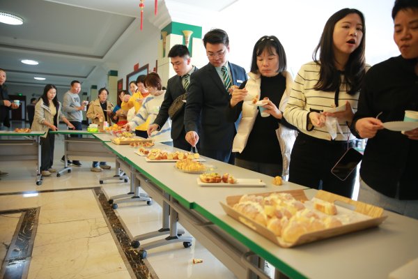 在市分公司四樓大廳,工作人員為職工們準備了各式美味的點心、新鮮的水果、各種熱飲和冷飲。職工們在百忙之中抽出空閑時間,與同事相約一起參加茶歇會,品嘗琳瑯滿目的點心和水果,在其樂融融的氛圍中,享受工作中片刻的開心快樂時光。