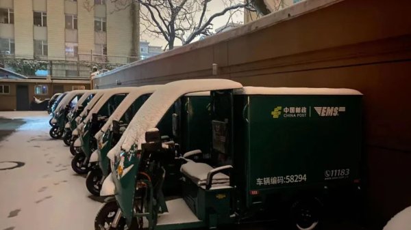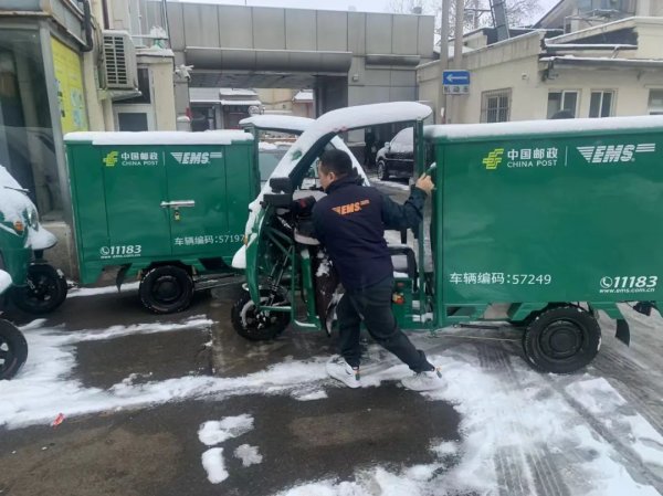 房山區(qū)阜盛西街郵政支局為投遞隊(duì)伍陸續(xù)冒雪出發(fā)掃清障礙。投遞員充分利用小拉車(chē)、防水包裝和防雨帆布等工具保護(hù)好郵件。大件包裹根據(jù)用戶要求,貼心送至指定防水位置。在這冰天雪地里,他們成了冬日里最美的風(fēng)景線。