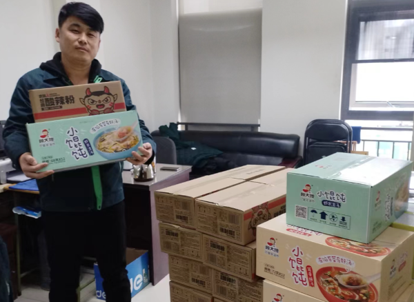 2023年“雙十二”到來,大雪,氣溫驟降。郵區(qū)中心工會(huì)及時(shí)為全中心各班組補(bǔ)充了小餛飩、巧克力、雞蛋干等第二批旺季“戰(zhàn)備糧”。