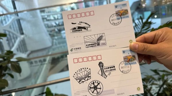 大興機場可以定制機場場景明信片了,還可以在柜臺集郵戳,真是“打卡”神器!