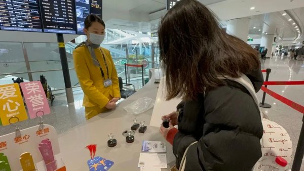 此外,柜臺還提供大興機場專屬郵戳印章服務(wù),除了留念珍藏,也可將明信片寄給遠方的朋友和親人。該專屬明信片不僅具有傳統(tǒng)意義上表達情感的功能,還富有觀賞性和收藏價值。