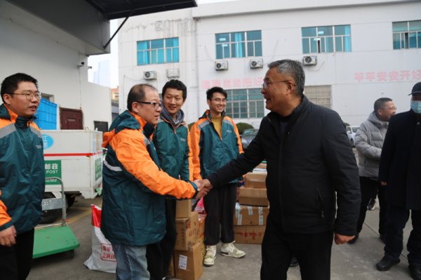 12月28日下午,湖州市總工會黨組書記、常務(wù)副主席田立新,率湖州市總工會權(quán)保部部長孔晨、湖州市直屬基層工會主席戴大喜一行,代表市委市政府、市總工會前來慰問奮戰(zhàn)在一線的郵政快遞員工,田書記握著快遞小哥的手,親切地詢問了解他們工作與生活的情況,囑咐他們注意安全、勞逸結(jié)合,感謝他們及家屬的辛勤付出,為湖州經(jīng)濟發(fā)展貢獻力量。同時,還專門帶來了慰問品,親手送到員工手上并合影。