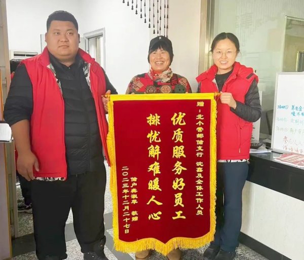 “太感謝了,要不是你們認真負責,我的損失就大了。”為了表達謝意,龔女士顧不上天氣寒冷,錦旗做好后第一時間送到了營業(yè)所。(