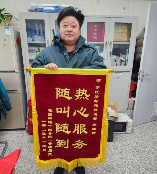 就在當(dāng)天,用戶李女士來到學(xué)院路投遞部為投遞部主任李國峰送上印有“熱心服務(wù) 隨叫隨到”8個字的錦旗。前不久,李國峰接到李女士查詢報紙的來電,經(jīng)過溝通,他了解到該用戶地址并不在學(xué)院路投遞范圍內(nèi)。面對此種情況,他很爽快地答應(yīng)用戶幫其尋找,并很快將報紙送到用戶家中。一個小小的舉動,讓用戶很是感動,于是李女士制作了錦旗并親自送到投遞部,向李 國峰表示感謝。
