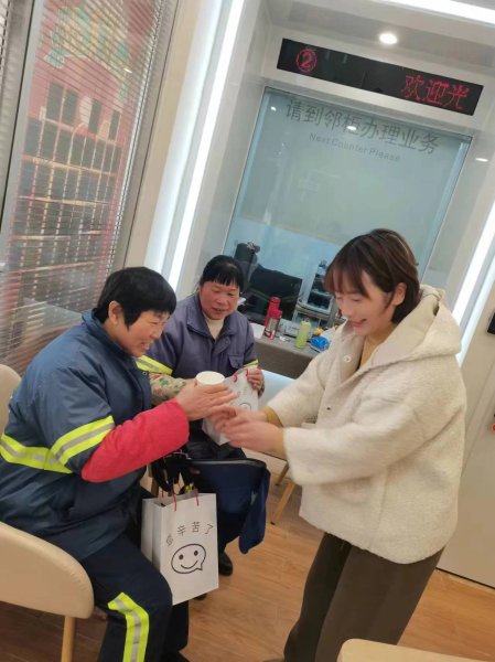 春節(jié)期間,當(dāng)有環(huán)衛(wèi)工人、快遞小哥等戶外勞動者來愛心驛站休憩時,來自網(wǎng)店的工作人員第一時間將準(zhǔn)備好的熱紅糖茶、八寶粥、暖寶寶貼等送到戶外工作者手中,確保戶外工作者在低溫環(huán)境下能夠得到及時有效的防護(hù)和補(bǔ)給,并送上了新春祝福。
