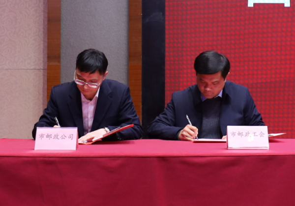 會(huì)議期間,贛州市分公司王健總經(jīng)理與市郵政工會(huì)肖翔主席簽訂了《贛州市分公司2024年為員工辦實(shí)事承諾書》和《贛州市分公司工資集體協(xié)商專項(xiàng)協(xié)議》。(江西省郵政工會(huì))