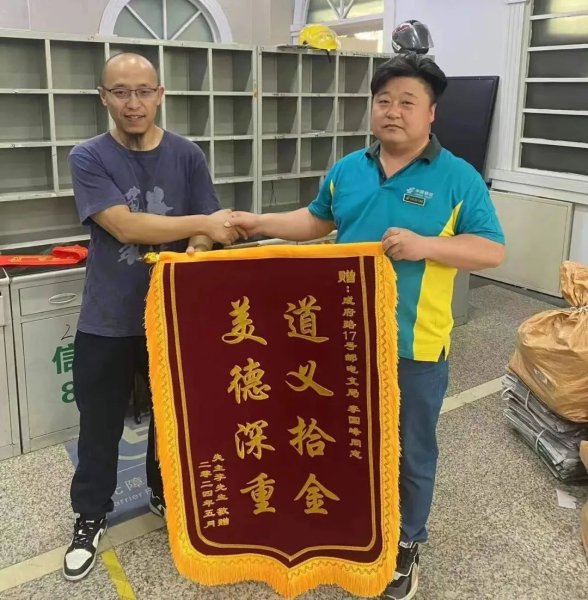 “真是太感謝了,您的一個善舉,不僅讓我避免了錢財上的損失,更是讓我減少了太多的麻煩,要不光補齊些證件,沒有十天半個月下不來?!?月4日,李先生來到學院路投遞部,將手中寫有“道義拾金,美德深重”的錦旗交給投遞部主任李國峰,并不斷表達自己的感激之情。