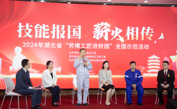 本場宣講活動以“技能報國、薪火相傳”為主題,劉杰與全國勞動模范周怡、王建清,湖北省“十佳師德標(biāo)兵”汪行,大國工匠周永和共5位勞模工匠一起,被授予兼職導(dǎo)師聘書,與來自武漢船舶職業(yè)技術(shù)學(xué)院、長江工程職業(yè)技術(shù)學(xué)院、武漢鐵路職業(yè)技術(shù)學(xué)院的300名師生代表共聚一堂,分享奮斗故事、暢談勞動心聲,全省各類職業(yè)院校師生同步收看直播。