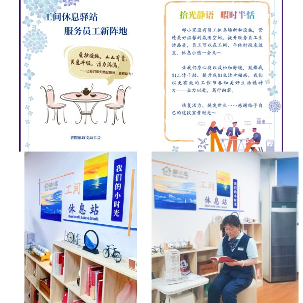 2024年5月上旬,普陀郵政工會針對常德路1269號普陀郵政支局工間休息室研究設(shè)計并制定詳細的建設(shè)方案,同時向支局職工征詢建議。5月24日市公司工會領(lǐng)導(dǎo)蒞臨普陀支局開展相關(guān)調(diào)研工作,關(guān)心了解建設(shè)場地實際情況和聽取支局員工意見,關(guān)注普陀支局員工工間休息室建設(shè)方案實施,并提出了寶貴的建議。6月10日,普陀郵政工會按計劃方案完成了對普陀支局工間休息區(qū)域的現(xiàn)場測繪和平面圖設(shè)計,劃分休息區(qū)域為半隔斷式,依據(jù)平面及效果圖從硬件如健身器械、休息按摩座椅、工間休息茶飲設(shè)備、閱讀區(qū)裝飾書架設(shè)計等;充分考慮休息區(qū)域私密性、安靜舒適度方面升級改造,配備了空氣凈化器及綠植景觀,為職工提供良好的休息環(huán)境;為支局攬投及一線員工,在外勤歸班、工間休息時間段里,提供可以午休小憩、泡茶飲水、閱讀觀影等區(qū)域;以細致的服務(wù)、生活場景化體驗為建設(shè)方向,力求服務(wù)創(chuàng)新和建設(shè)成效。為員工休息場所營造美好溫馨的氛圍,提升員工在企業(yè)工作生活中的幸福度。