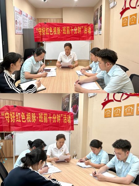 遂昌縣分公司西街網(wǎng)點(diǎn):以紅色根脈為引領(lǐng),激發(fā)前行動(dòng)力。6月21日,遂昌縣分公司西街網(wǎng)點(diǎn)成功舉辦了本月“守好紅色根脈.班前十分鐘”宣講活動(dòng)。黨建聯(lián)絡(luò)員周麗娟作為本期宣講人,傳達(dá)了全省郵政1-5月生產(chǎn)經(jīng)營(yíng)分析會(huì)的重要精神,生動(dòng)分享了全國(guó)工人先鋒號(hào)獲得者——江蘇常州市分公司花園支局的先進(jìn)事跡。通過(guò)花園支局“聚客拓源”工作法的介紹,激發(fā)了員工們對(duì)提升業(yè)務(wù)技能和服務(wù)質(zhì)量的熱情,為網(wǎng)點(diǎn)發(fā)展注入了新的動(dòng)力。
