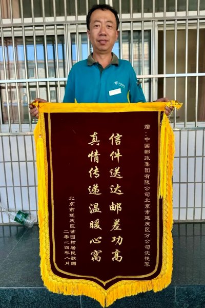 “信件送達(dá)郵差功高,真情傳遞溫暖心窩” —— 這面錦旗上的字字句句,不僅是老人對(duì)沈艷軍個(gè)人的感激之情,更是對(duì)北京延慶郵政優(yōu)質(zhì)服務(wù)的高度認(rèn)可。老人的聲音略顯顫抖,卻充滿了真摯:“小沈服務(wù)態(tài)度好,對(duì)工作認(rèn)真負(fù)責(zé),對(duì)人又熱心。他是我心中的活雷鋒,用實(shí)際行動(dòng)詮釋了‘人民郵政為人民’的真諦。”