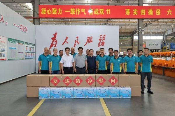 工會送清涼,防暑保安康。2024年8月5日上午,烈日炎炎,湖北省分公司紀委書記吳建華等領導來到孝感郵政網(wǎng)路運營中心進行高溫慰問,吳書記一到中心詳細詢問了分揀運輸作業(yè)生產(chǎn)情況,中心向吳書記重點匯報了在高溫天氣下采取的防暑降溫措施以及錯峰作業(yè)情況,他親切對現(xiàn)場員工說:“高溫期間進出口作業(yè)工作強度大,體力消耗大,我代表省分公司對各位同志表示親切的慰問,希望大家在高溫期間注意身體,一如既往做好快遞進村運輸、出口集包、夠量直發(fā)等工作”。同時吳書記強調一定要做好無著郵件的保管、登記、處理工作,