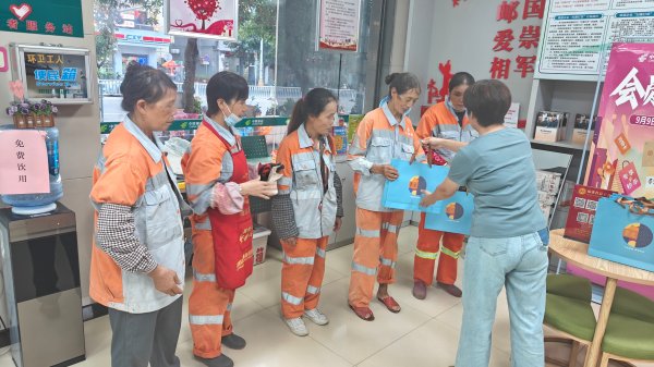9月13日下午,永泰上馬郵政支局、連江丹陽(yáng)郵政支局郵愛(ài)驛站活動(dòng)現(xiàn)場(chǎng)邀請(qǐng)了轄區(qū)內(nèi)環(huán)衛(wèi)工人、外賣人員等戶外勞動(dòng)者,縣分公司副總經(jīng)理為他們送上了中秋月餅,與他們圍坐在一起話中秋、嘮家常、猜字謎拉進(jìn)了彼此之間的距離,更好地了解他們的內(nèi)心需求,持續(xù)營(yíng)造尊重、關(guān)愛(ài)戶外勞動(dòng)者的良好氛圍,不斷提升戶外勞動(dòng)者的歸屬感和幸福感。