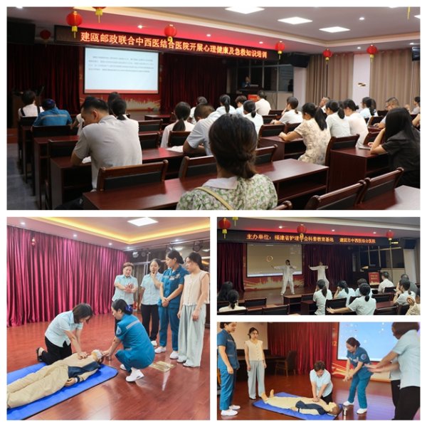 為進(jìn)一步關(guān)愛職工身心健康,增強(qiáng)職工健康意識和自我保健能力。9月13日,建甌市郵政工會開展了心理健康輔導(dǎo)與應(yīng)急救護(hù)培訓(xùn)活動。來自班組網(wǎng)點(diǎn)40余名一線職工參加了活動。活動邀請了建甌市中西醫(yī)結(jié)合醫(yī)院心理咨詢師葛小英為職工進(jìn)行心理健康專題輔導(dǎo)。葛小英老師緊貼大家的工作特點(diǎn)和工作實(shí)際,圍繞工作壓力和身心健康的關(guān)系,通過講述情緒調(diào)解技巧、情緒表達(dá)與溝通、情緒管理與心理健康等內(nèi)容,做了一場深入淺出、通俗易懂的輔導(dǎo)授課,并就如何自我心理調(diào)節(jié)為職工提出了科學(xué)的建議,同時進(jìn)行了太極拳展示表演,豐富了活動內(nèi)容。隨后通過理論知識與實(shí)際操作相結(jié)合的方式,向參訓(xùn)人員介紹了心肺復(fù)蘇的重要性、操作步驟和注意事項(xiàng)。同時,利用模擬人進(jìn)行現(xiàn)場示范,從判斷意識、檢查呼吸、擺放體位,到胸外心臟按壓、開放氣道、人工呼吸等環(huán)節(jié)逐一進(jìn)行演示,并指導(dǎo)職工進(jìn)行實(shí)際操作練習(xí),現(xiàn)場互動氛圍濃厚,得到職工們的廣泛贊譽(yù)。