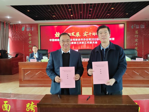 在會(huì)上,新余市分公司副總經(jīng)理、工會(huì)主席李智軍與公司第一責(zé)任人蔡平總經(jīng)理簽訂了《2025年新余市分公司為員工辦實(shí)事承諾書》和《2025年新余市分公司工資集體協(xié)商專項(xiàng)協(xié)議》。